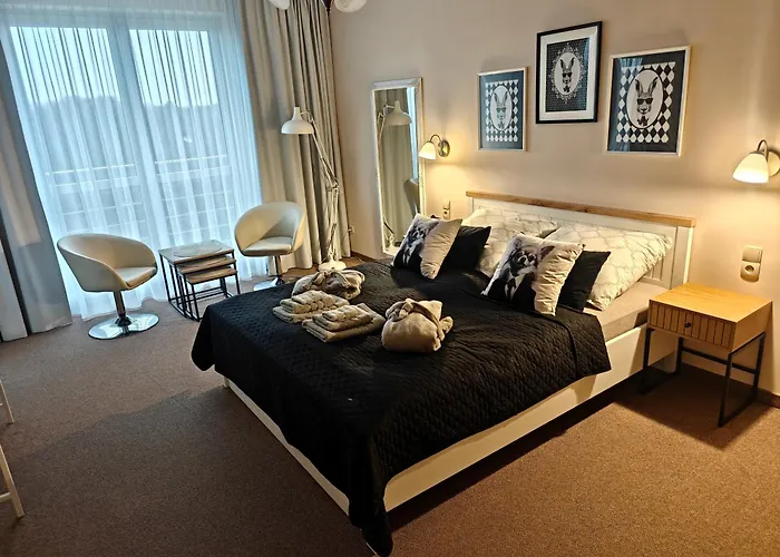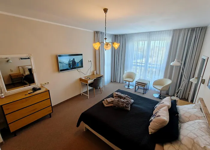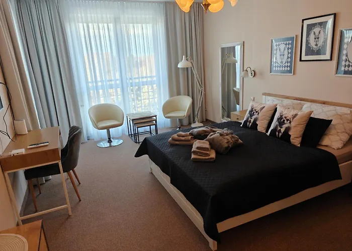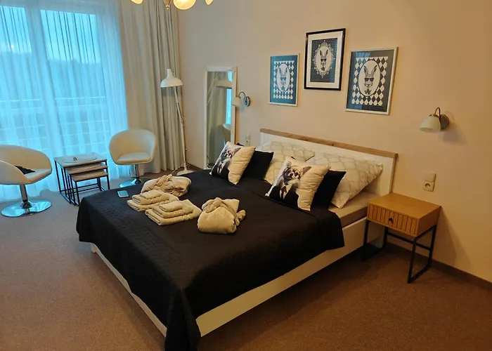 Esta propiedad incluye un balcón y tiene vistas a la ciudad. Este apartamento cuenta con 1 dormitorio. En el "Perla" Apartament Prywatny W Diva Spa Hotel, los huéspedes disfrutarán de la comodidad de disponer de secador de pelo, albornoces y toallas en el cuarto de baño. También encontrarás un inodoro separado y ducha.